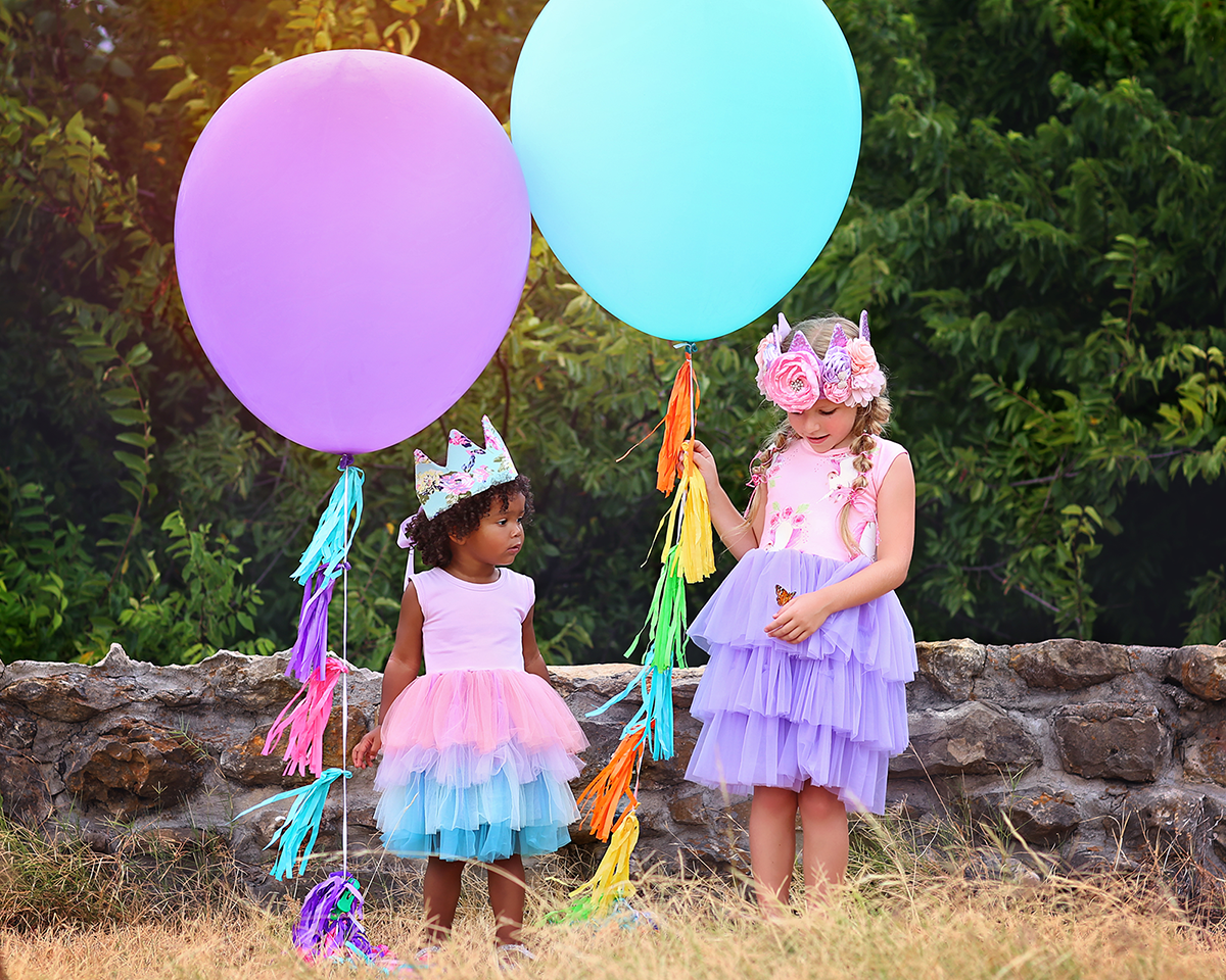 Whitney Elizabeth transports you to a magical world of imagination! A land where glitter, sequins, sparkles, cupcakes, birthday parties, unicorns, and rainbows collide...oh my! Our attire and accessories prove that comfort and shine CAN co-exist, as your littles can play freely in our wearable, yet equally fanciful items!